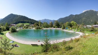 Waidring swimming lake – The artificial swimming lake in Waidring, also known as the green gem at the foot of the Steinplatte, is surrounded by an extensive lounger area and is just ideal for enjoying a pleasure-packed day of swimming with all the family. Thanks to the continual influx of fresh water, the swimming lake is of drinking water quality and at a temperature of around 22°C, tempts you in for a dip! Relax, lie in the sunshine and of course have fun – you can do all this in the swimming facility in Waidring!